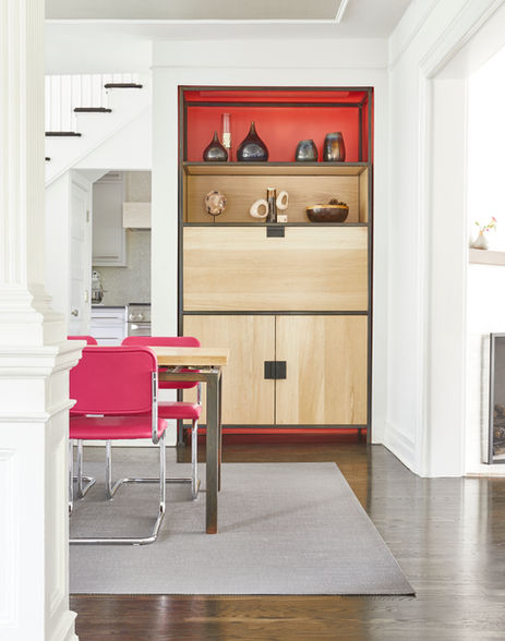 In this six-bedroom house upstate, we completed a full upper floor renovation of the primary suite, as well as other baths in the home, and selected furnishings, lighting, wall finishes, and decor.